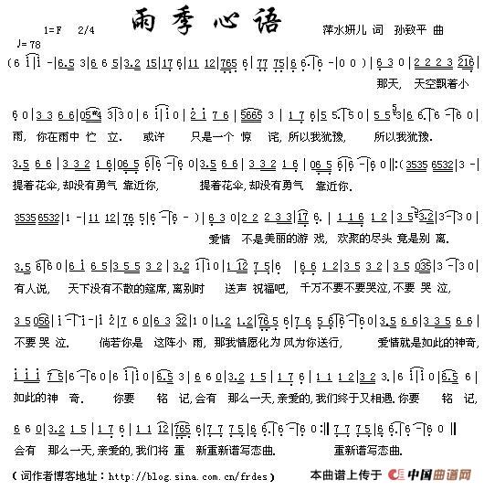 关于《雨季心语》曲谱的评论