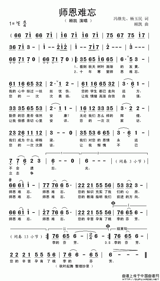 衷心感谢曲作者顾凯老师馈赠原谱!