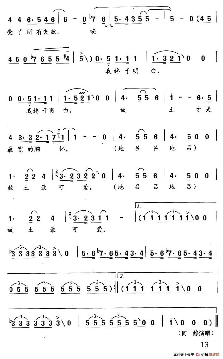 致谢:《中国曲谱网》衷心感谢作者老师馈赠原版歌谱!