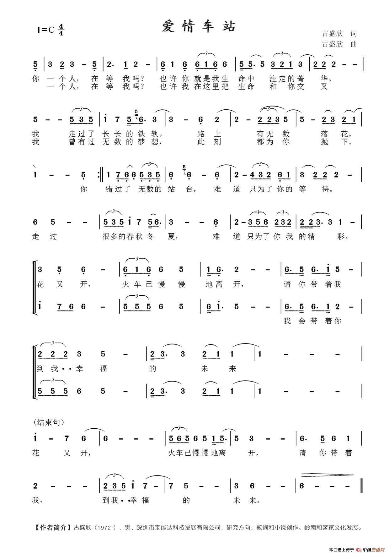 作词:古盛欣 作曲:古盛欣 来源:《中国曲谱网》 上传:沉舟侧畔过
