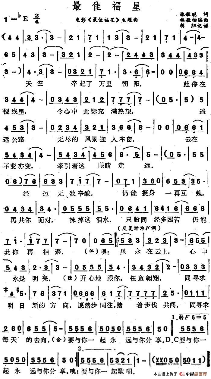关于《最佳福星》曲谱的评论