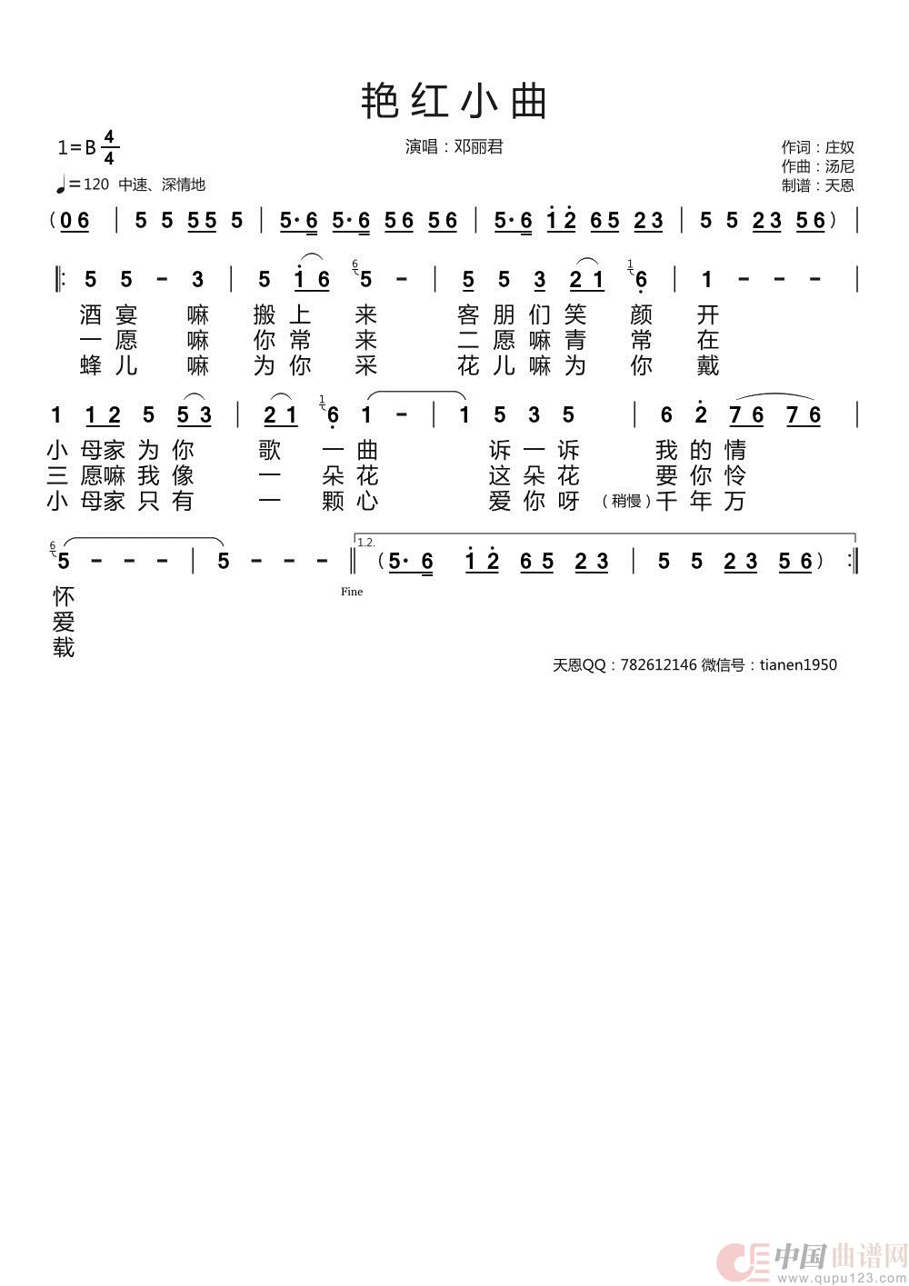 关于《艳红小曲(邓丽君)》曲谱的评论