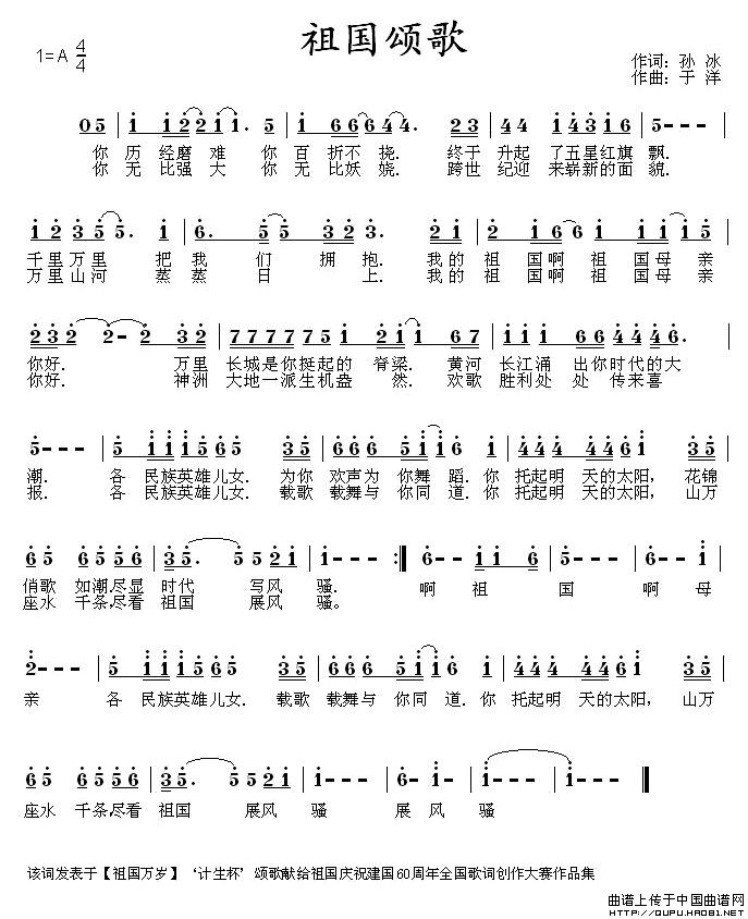 关于《祖国颂歌》曲谱的评论