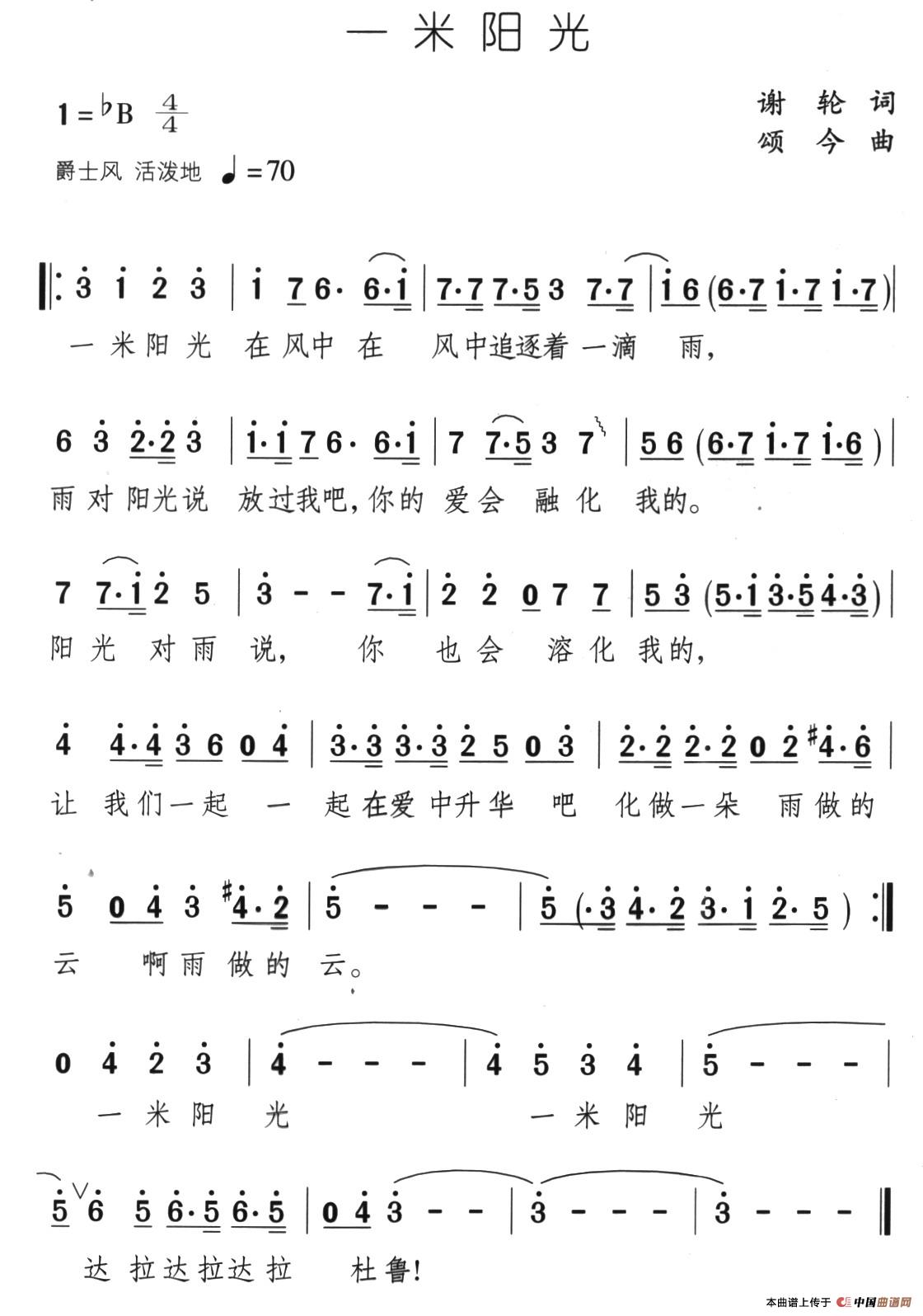 关于《一米阳光》曲谱的评论