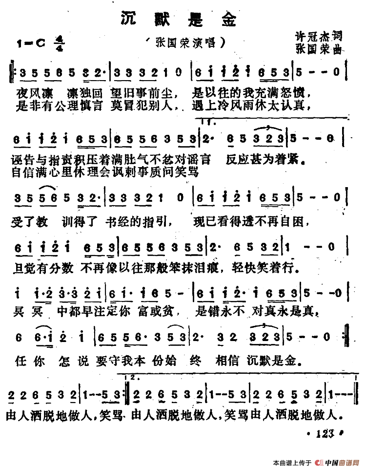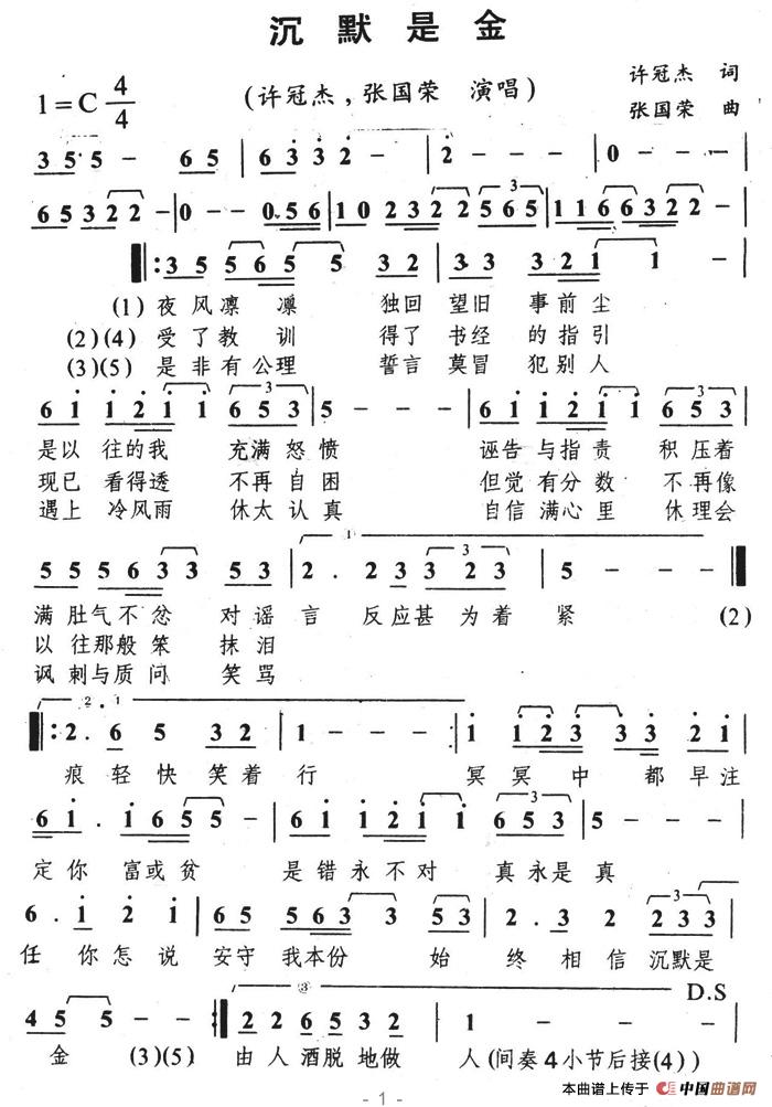 关于《沉默是金》曲谱的评论
