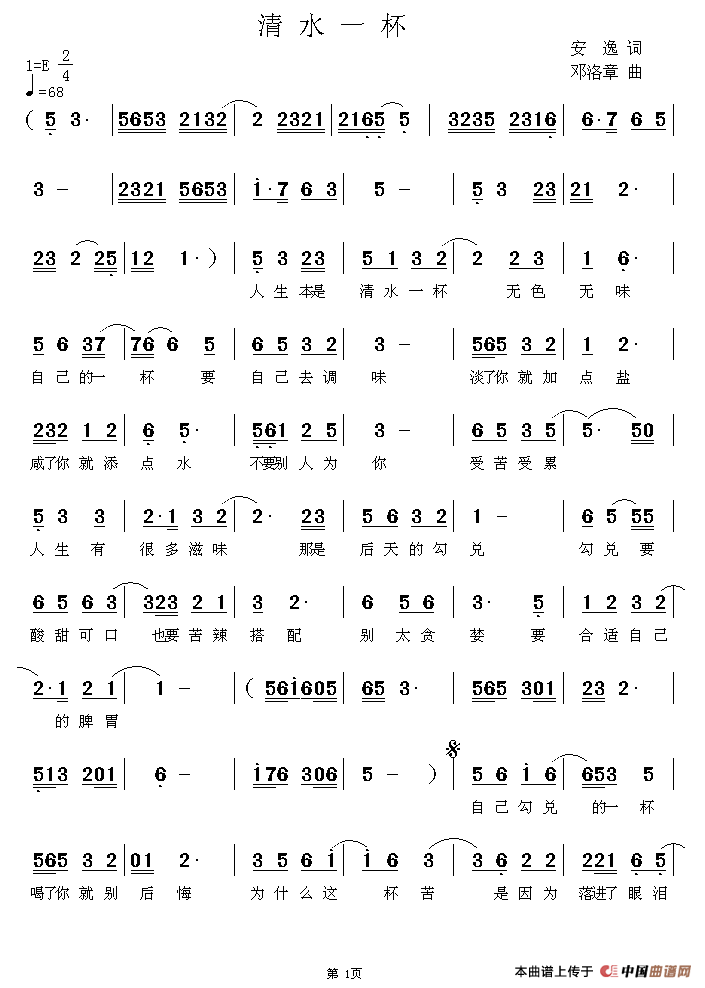 关于《清水一杯》曲谱的评论