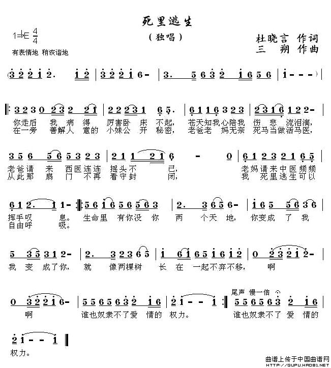 关于《死里逃生》曲谱的评论