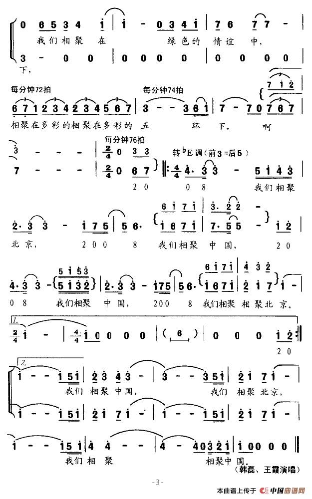 关于《相聚北京》曲谱的评论