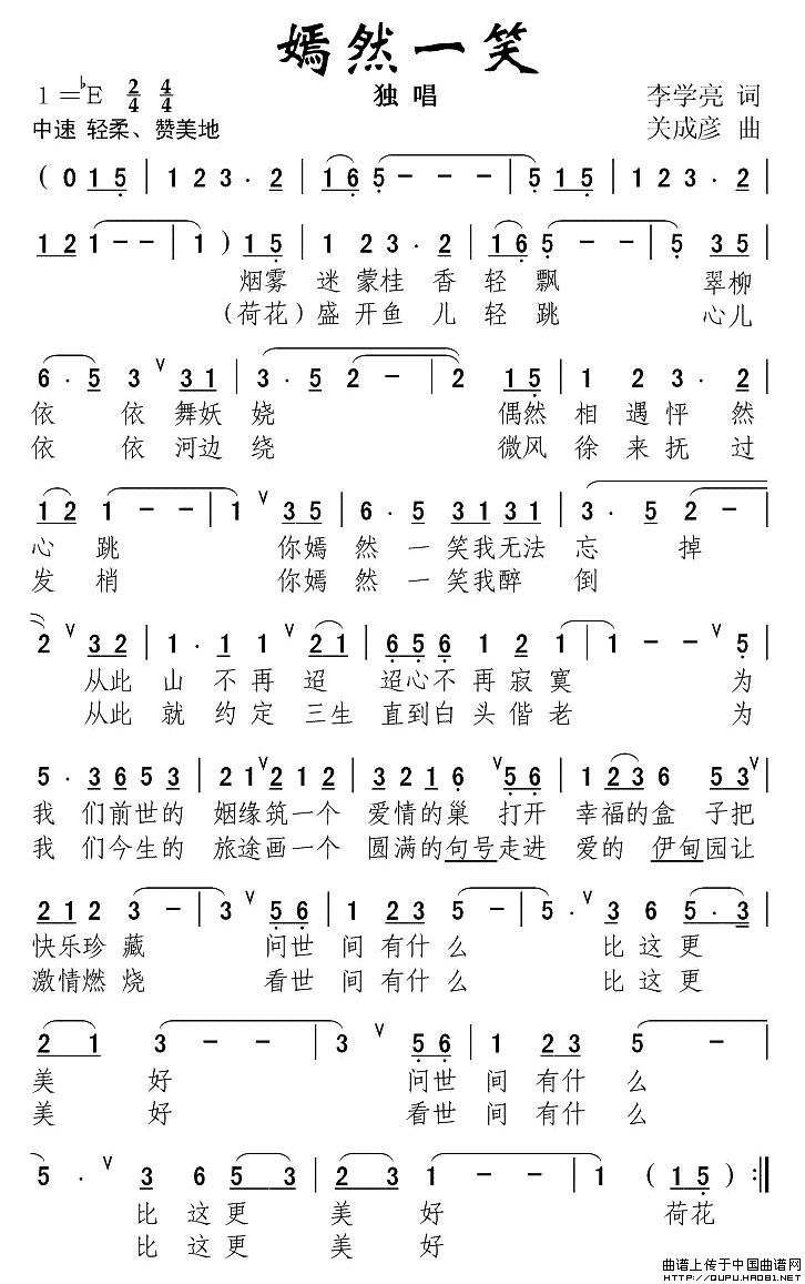 关于《嫣然一笑》曲谱的评论