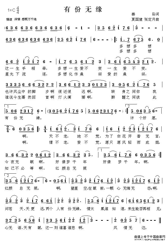 关于《有份无缘》曲谱的评论