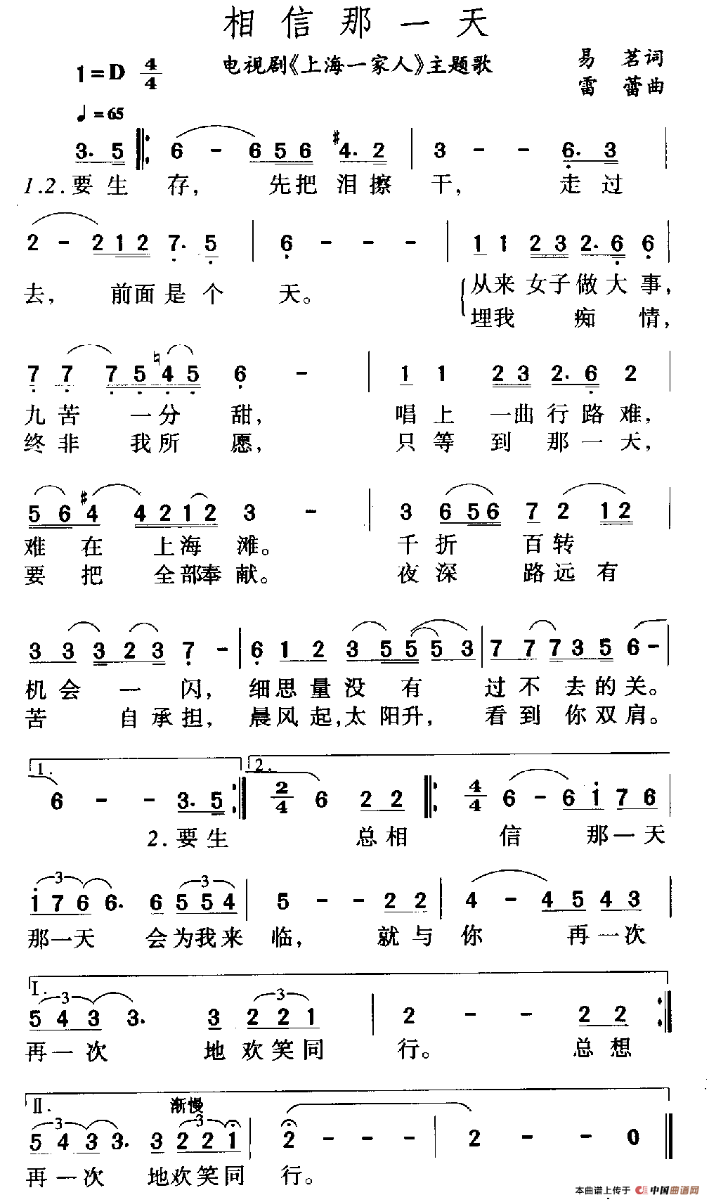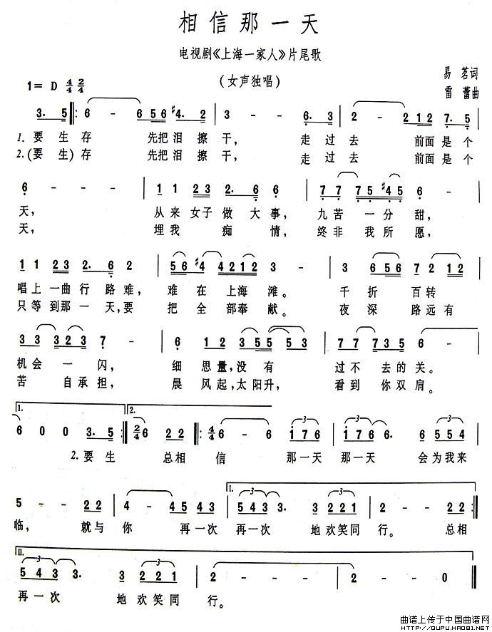 关于《相信那一天》曲谱的评论