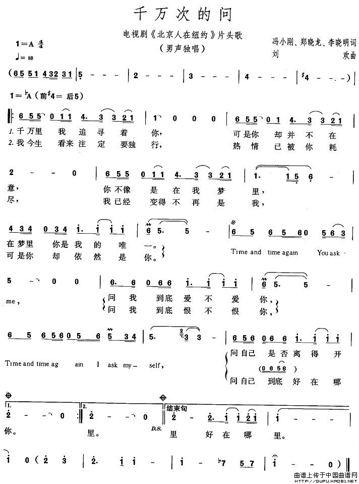 千万次的问(电视剧《北京人在纽约》片头歌)