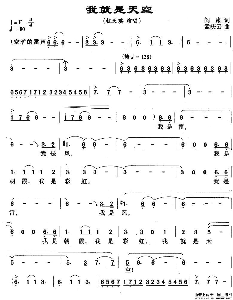 关于《我就是天空》曲谱的评论