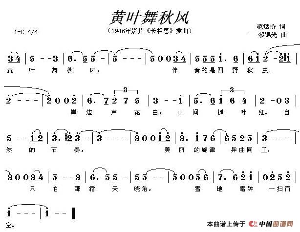 关于《黄叶舞秋风》曲谱的评论