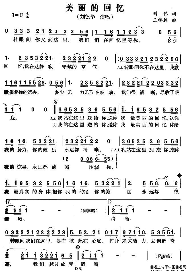 关于《美丽的回忆》曲谱的评论