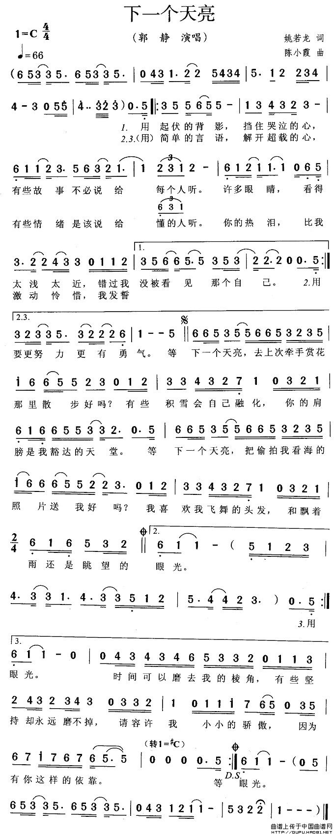 关于《下一个天亮》曲谱的评论