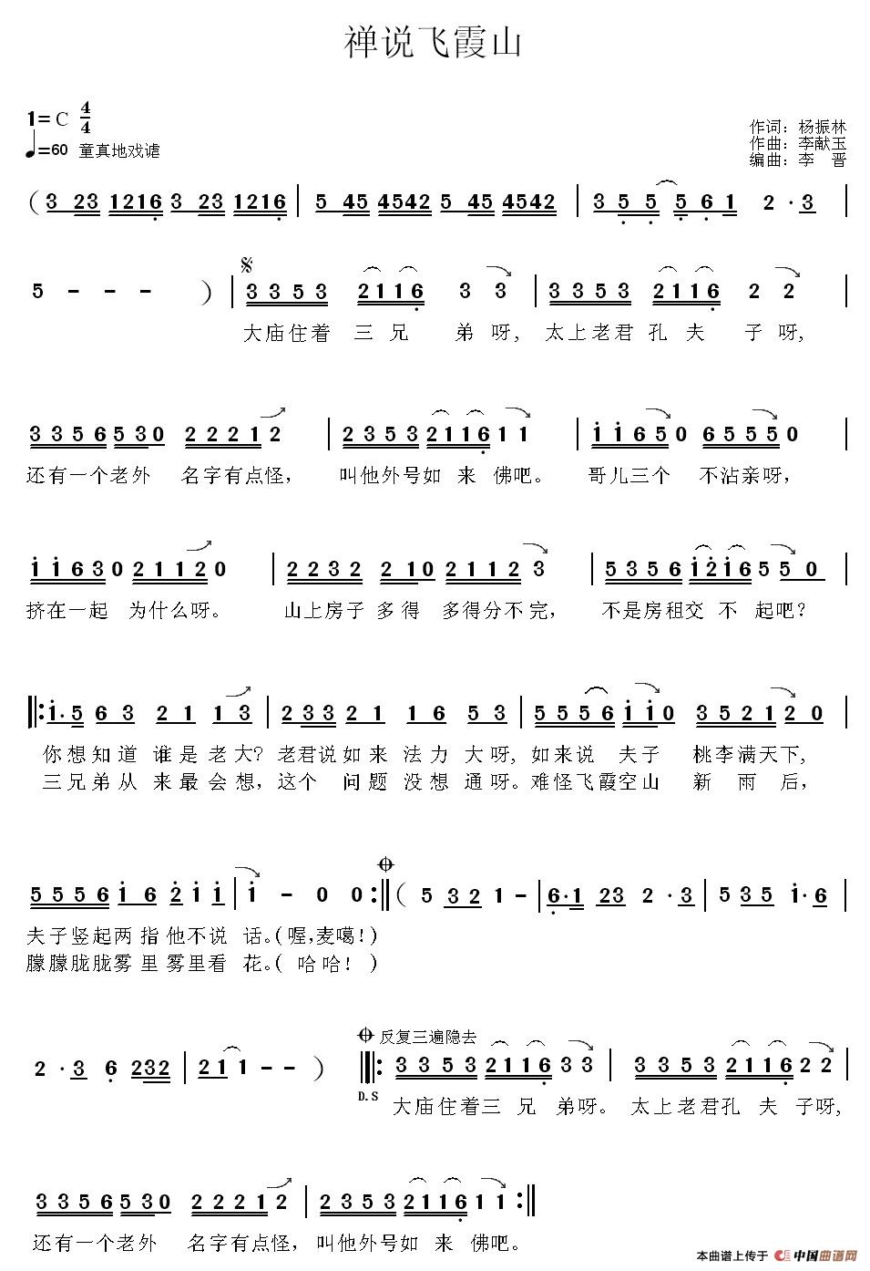 关于《禅说飞霞山》曲谱的评论