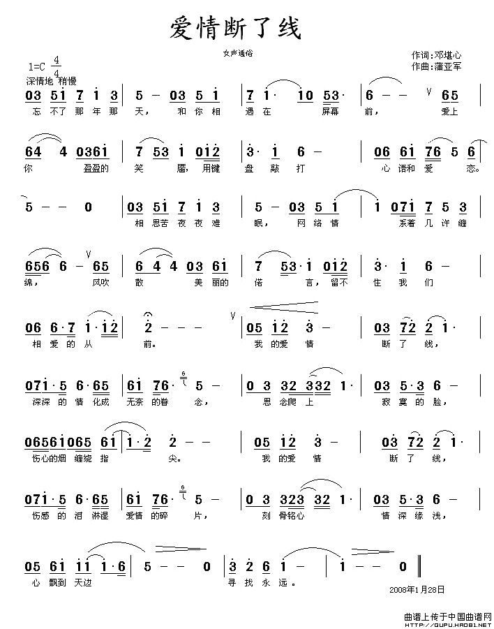 关于《爱情断了线》曲谱的评论