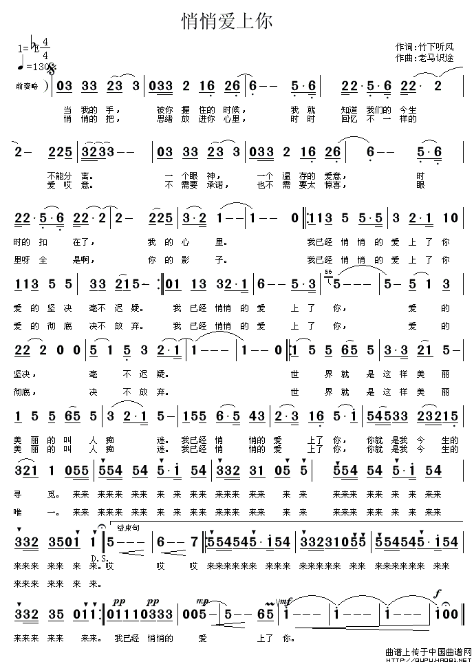 关于《悄悄爱上你》曲谱的评论