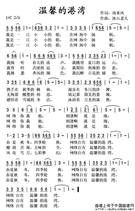 关于《温馨的港湾》曲谱的评论