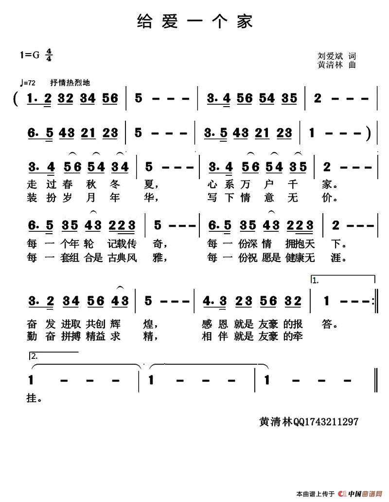 关于《给爱一个家》曲谱的评论