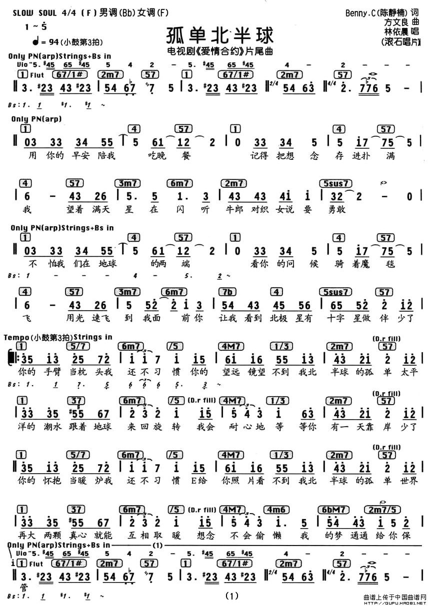 孤单北半球(电视剧《爱情合约》片尾曲、编配乐谱)