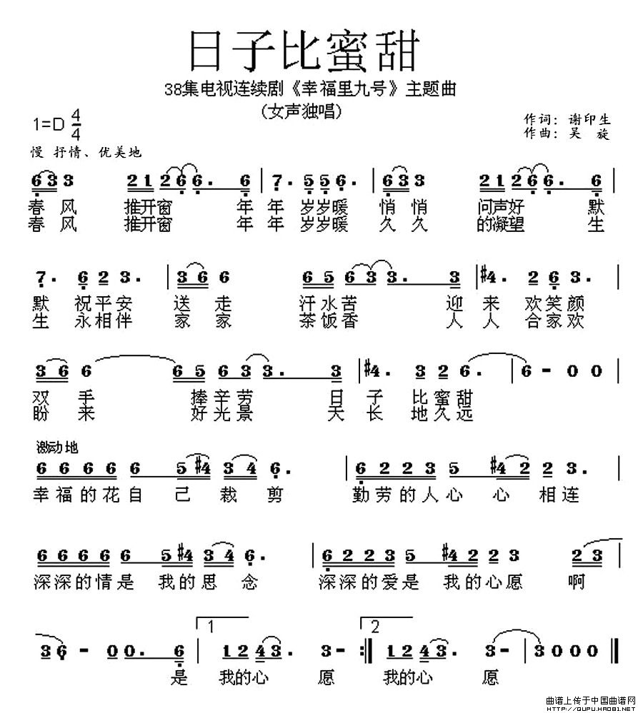 关于《日子比蜜甜》曲谱的评论