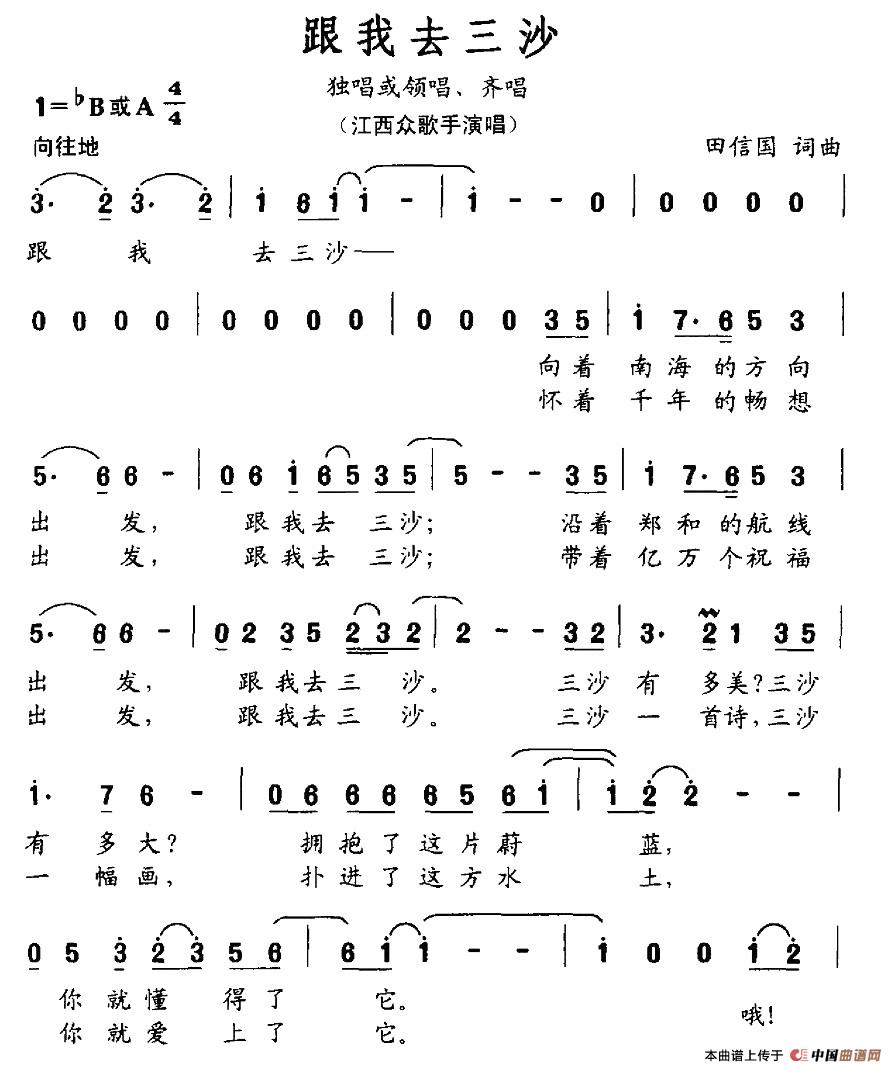 关于《跟我去三沙》曲谱的评论
