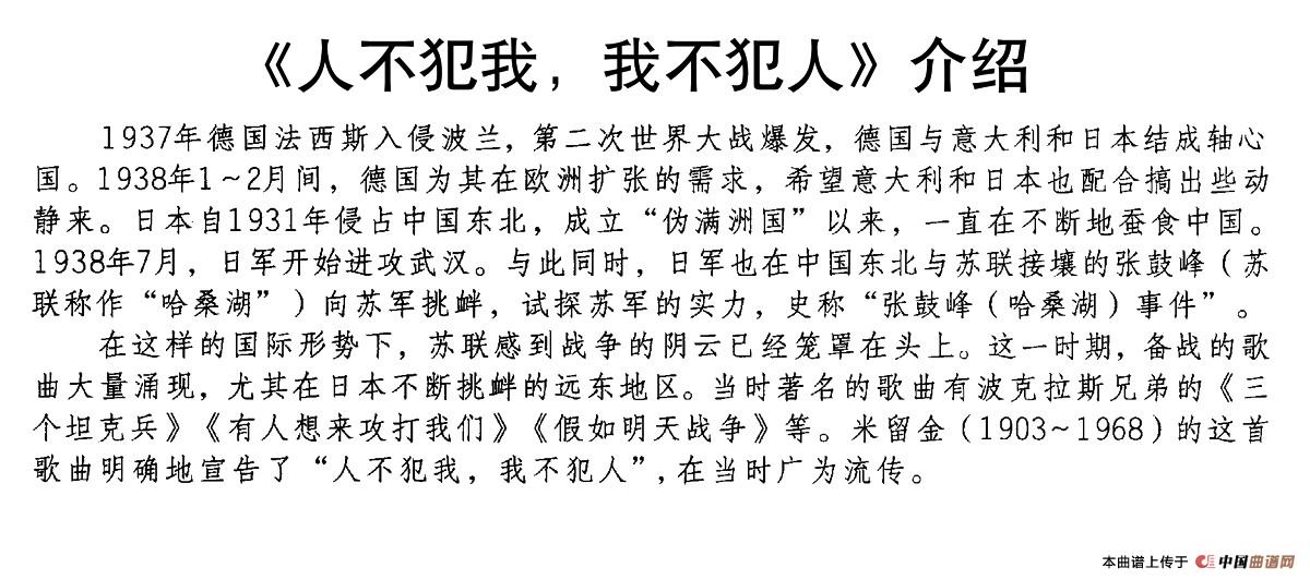 关于《[前苏联]人不犯我,我不犯人》曲谱的评论