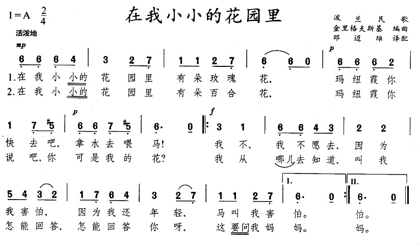 关于《在我小小的花园里》曲谱的评论