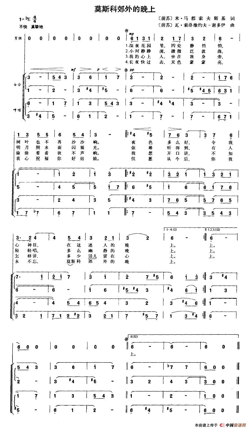 关于《[前苏联] 莫斯科郊外的晚上》曲谱的评论