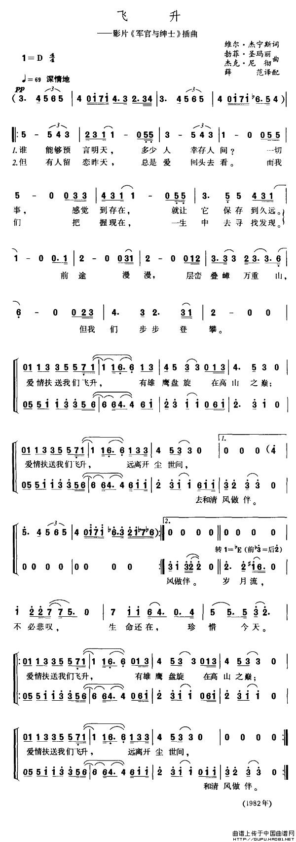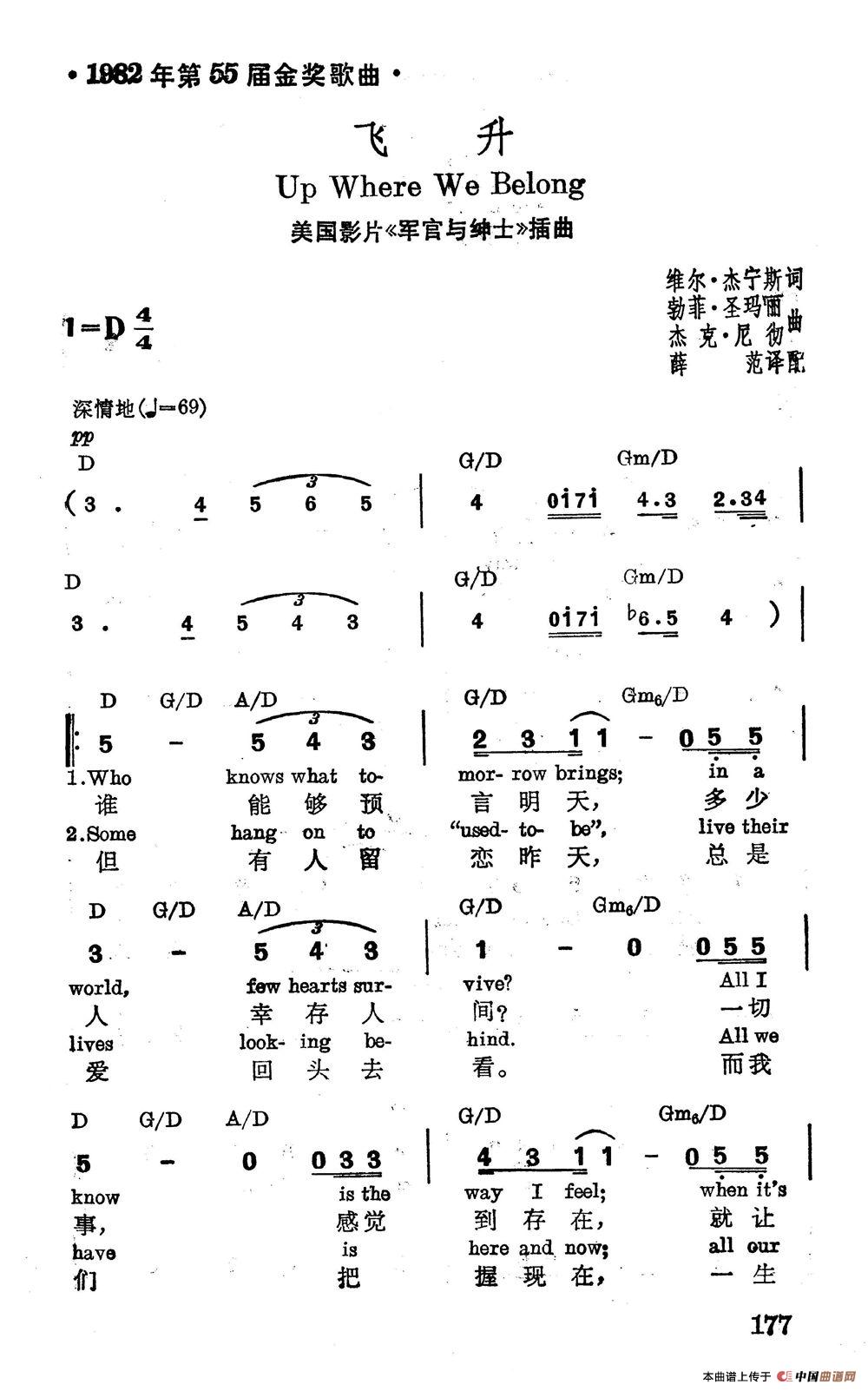电影《军官与绅士》插曲。影片导演是泰勒·海克佛德。主要演员有理查德·杰尔、德布勒·雯格尔等。作为影片结束的这一首二重唱歌曲《飞升》获1982年第55届奥斯卡最佳电影歌曲奖,在全美热门排行榜上持续两周第一名。
