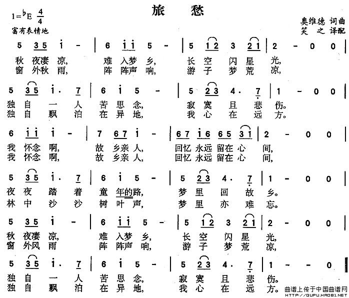 作词:奥维德 作曲:奥维德 格式:简谱 来源:《中国曲谱网》 上传:秋叶起舞