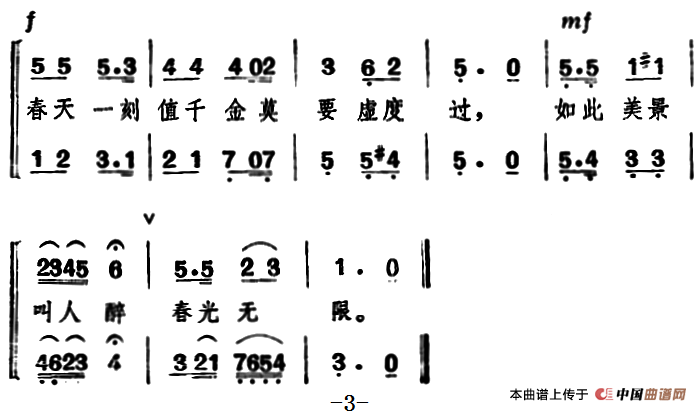 作词:武岛羽衣作词、孙汉超、陈永连译词 作曲:淹廉太郎作曲、陈永连配歌 来源:中国曲谱网 上传:热爱音乐88