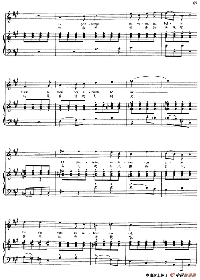 作词:玛丽亚译词 作曲:柏辽兹曲 俞子正配歌 来源:中国曲谱网 上传:热爱音乐88