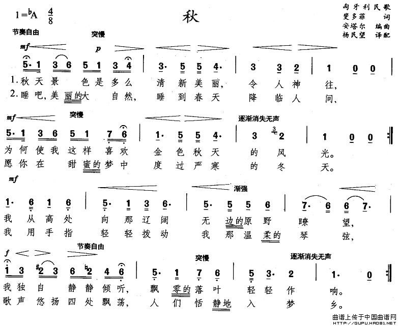 格式:简谱 来源:《中国曲谱网》 上传:秋叶起舞
