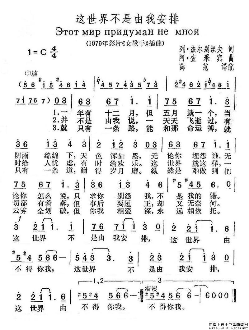 关于《[俄]这世界不是由我安排》曲谱的评论