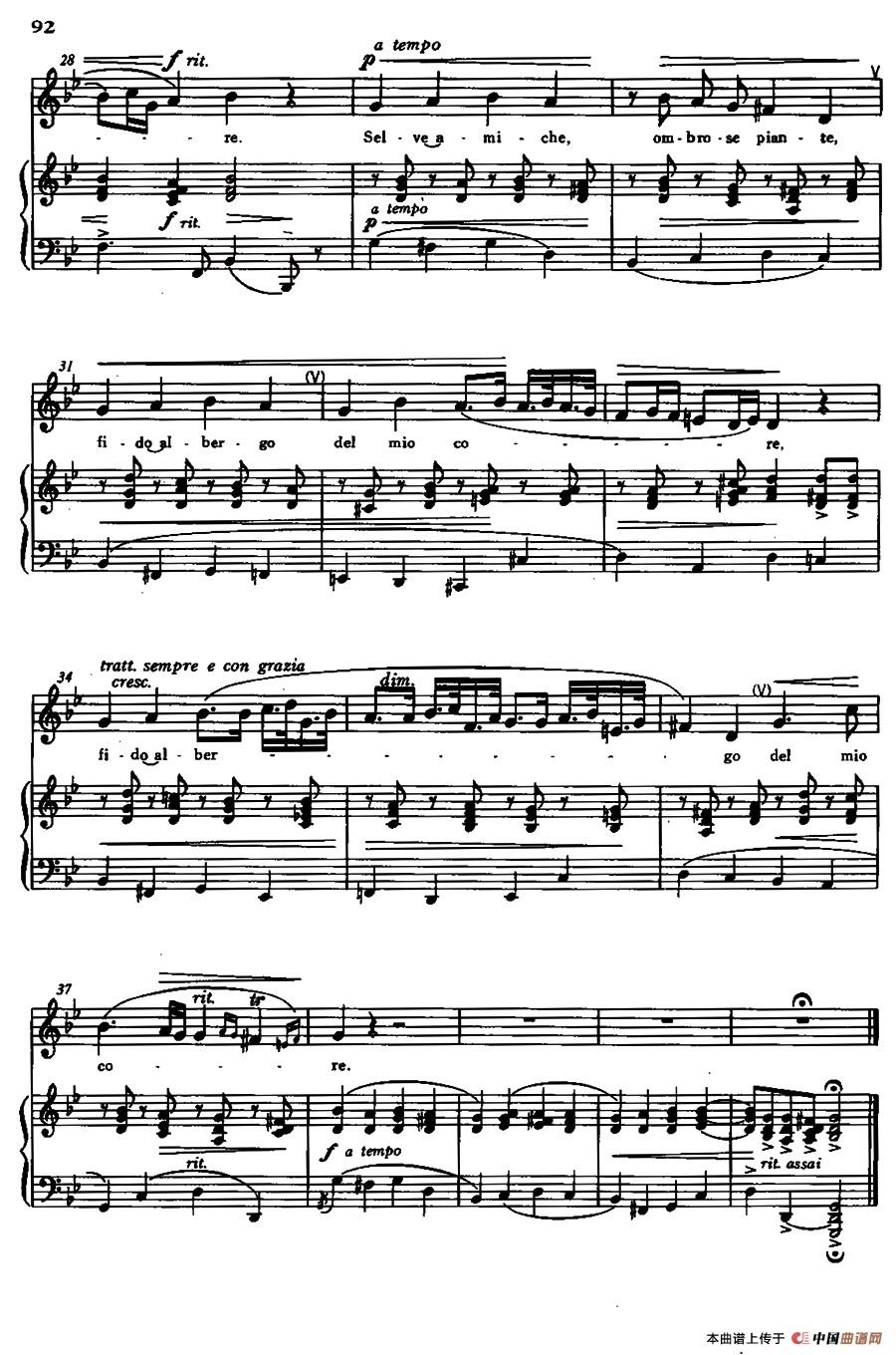 选自《意大利古典声乐曲集·低音用》,小咏叹调,选自牧歌剧《爱能战胜虚伪》。