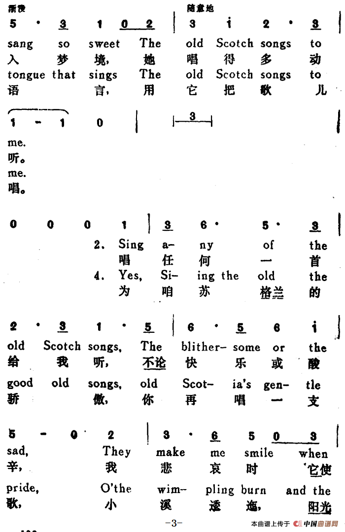 [英]唱古老的苏格兰歌给我听(O,Sing to Me the Old Scotch Songs)(汉英文对照)