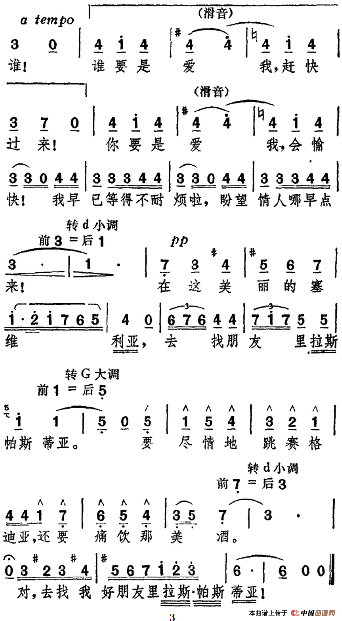 关于《赛格迪亚“来到这美丽的塞维利亚”》曲谱的评论