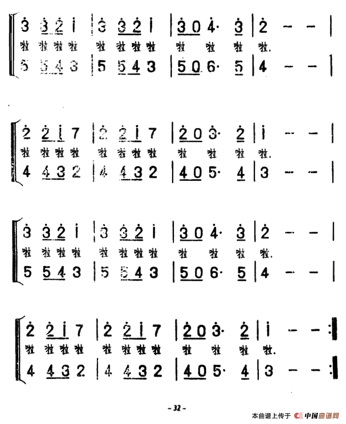 提示:在曲谱图片上单击右键,选择“图片另存为...”即可将曲谱保存到您的电脑中,打印时候可将图片插入到WORD中,调整合适大小打印即可。