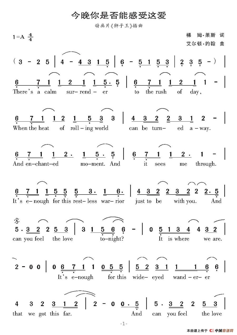 关于《[美]今夜你是否能感受这爱》曲谱的评论