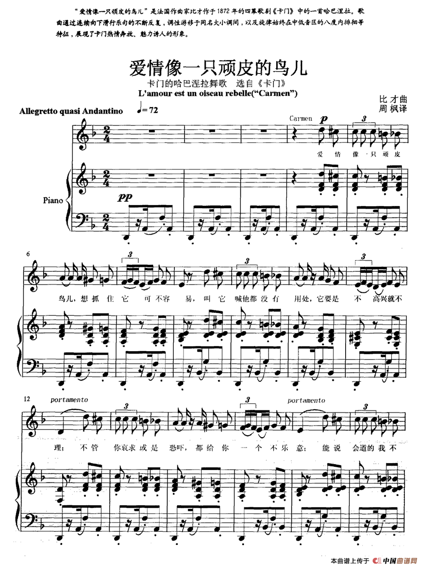 爱情像一只顽皮的鸟儿(歌剧《卡门》选曲、正谱)