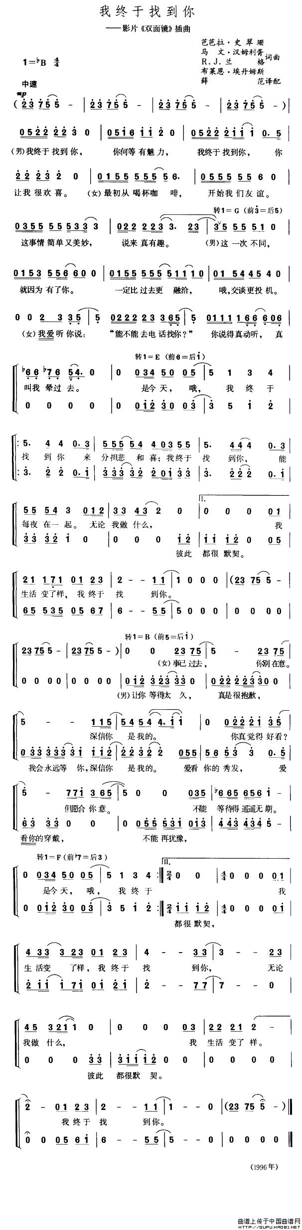 关于《我终于找到你》曲谱的评论