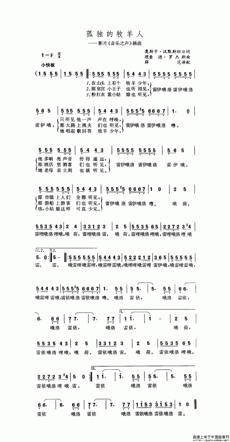 关于《[美]孤独的牧羊人(电影《音乐之声》插曲)》曲谱的评论