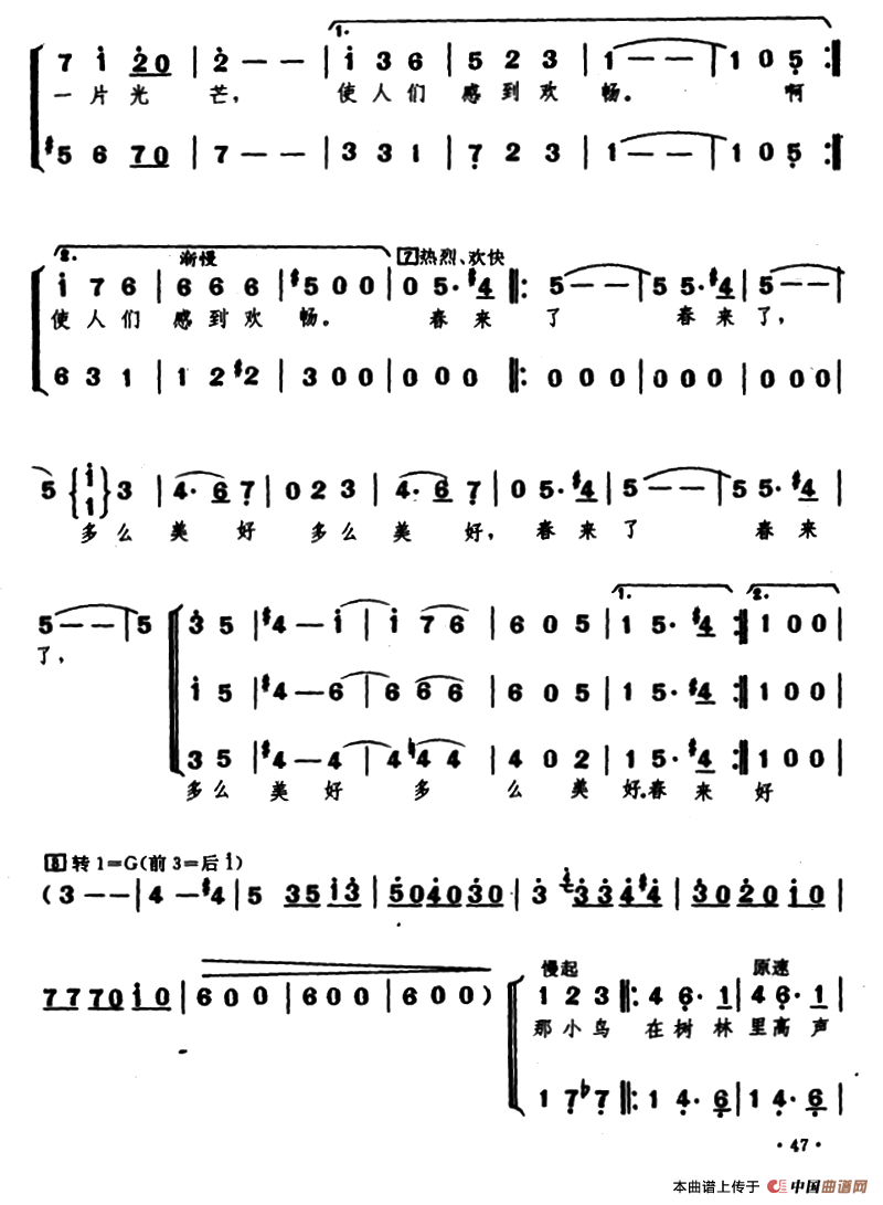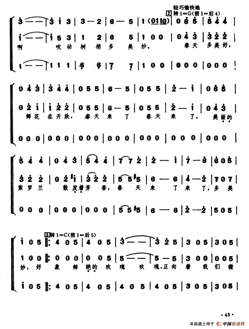 作曲:钟维国简化为童声合唱 来源:《中国曲谱网》 上传:秋叶起舞