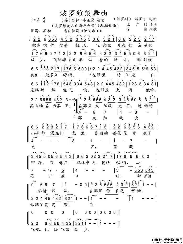 作词:[俄]鲍罗丁 作曲:[俄]鲍罗丁 格式:简谱 来源:《中国曲谱网》 上传:秋叶起舞