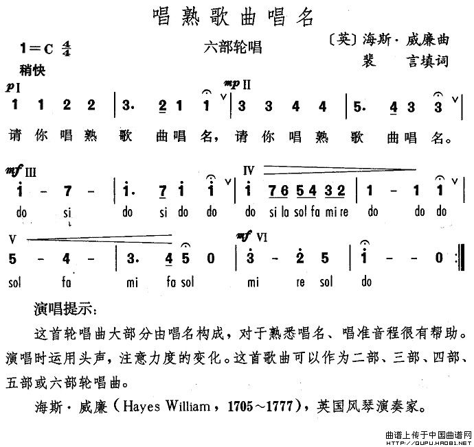 关于《唱熟歌曲唱名》曲谱的评论