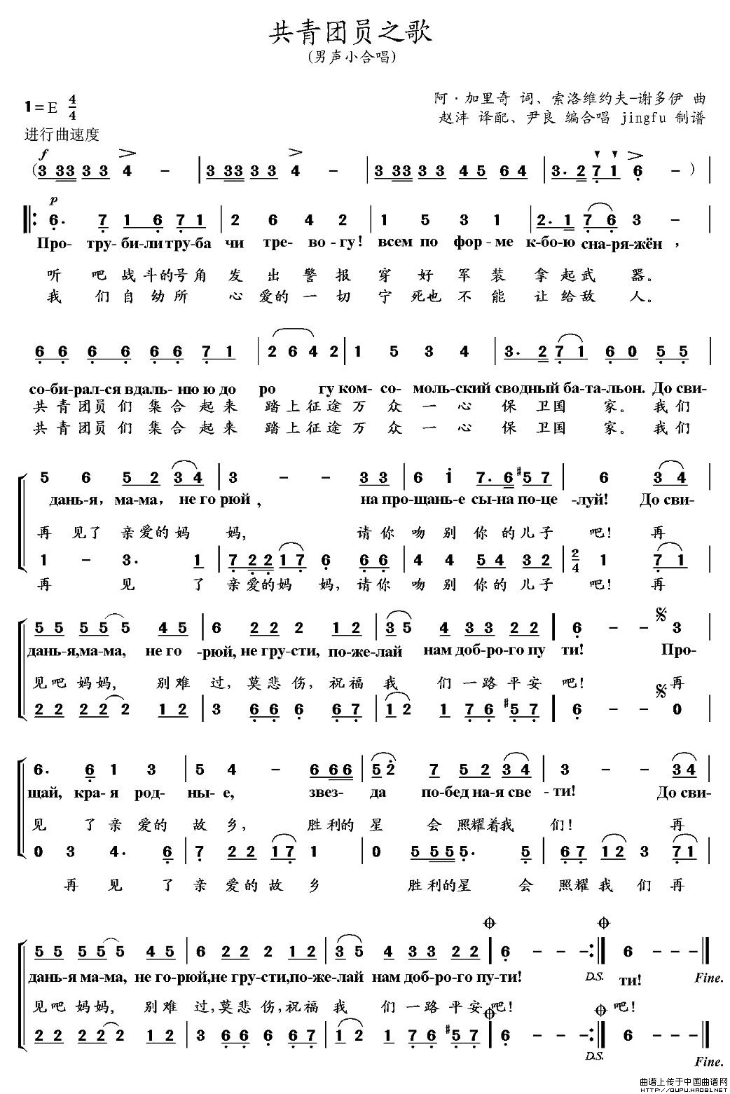 关于《[前苏联]共青团员之歌》曲谱的评论