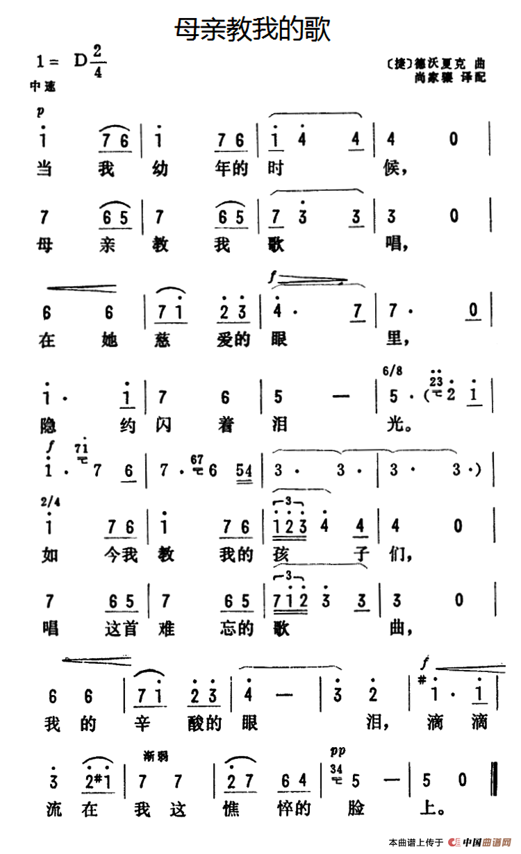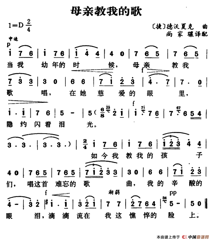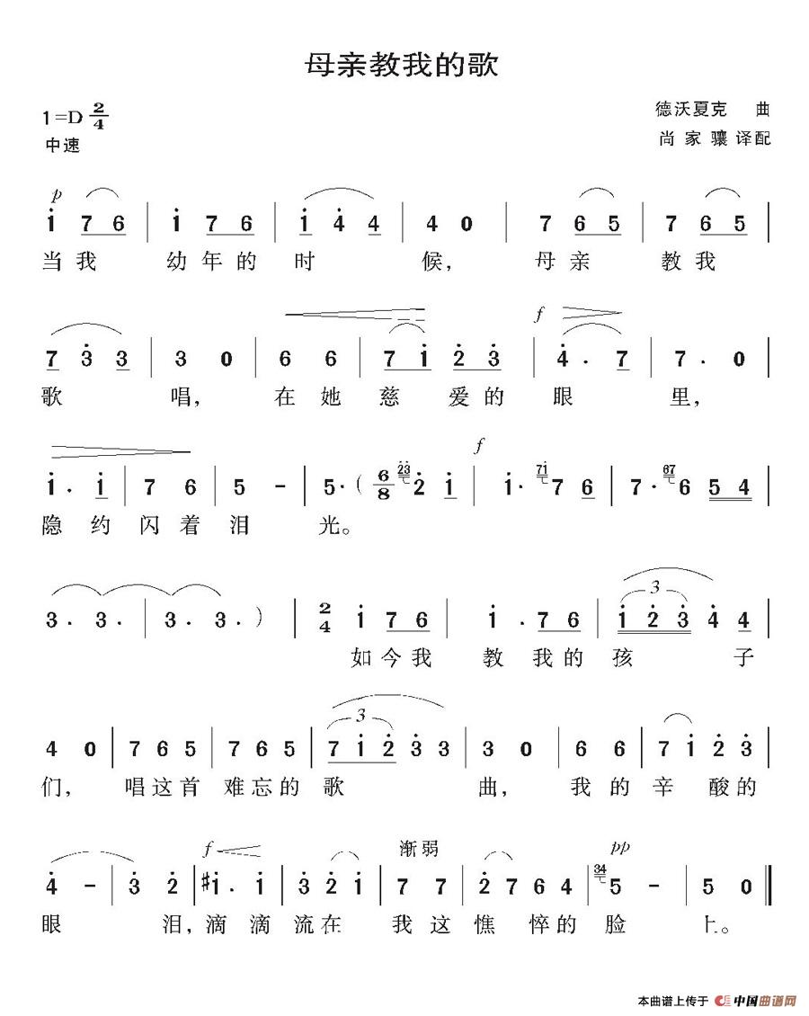 关于《[捷克]母亲教我的歌》曲谱的评论
